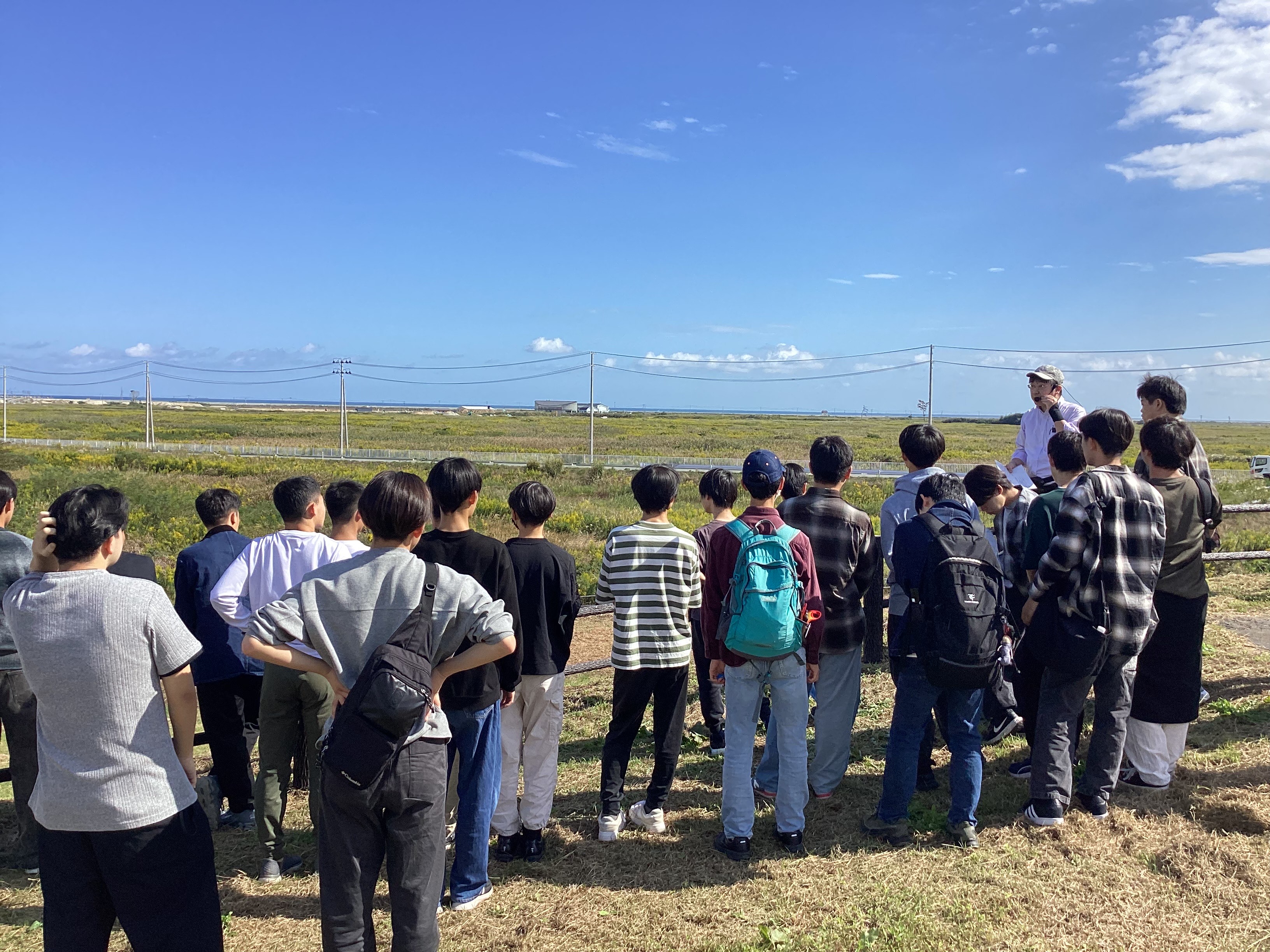 7時に朝食をとった後、出発の準備を整え、2泊お世話になったホテルニュー水戸屋に別れを告げ、8時にバスで浪江町へ向けて出発しました。 バスガイドの石戸谷さんは、仙台空港について説明しました。「仙台空港は平成9年に開港し、滑走路は長さ3000メートルで上空から見るとアルファベットのYのような形をしているのが特徴です。東日本大震災では、1階部分が津波で浸水しました。」道中に、放射線量が高いエリアに差し掛かった際には、「私たちは自然界でも放射線を浴びているので、過度に心配する必要はありません。」との説明がありました。また、被災地には「まだ住めない地域もありますが、故郷に帰りたいという地元の方々の強い思いがあります。」と、住民の気持ちを代弁する言葉もありました。 約110分間の移動を経て、9時50分頃に浪江町に到着しました。この日の午前中は「ホープツーリズムフィールドワーク」として、東日本大震災と原発事故からの復興が進む浪江町を訪れました。まず、『東日本大震災・原子力災害伝承館』を訪れました。この施設は福島県双葉町にあり、地震、津波、原発事故という未曾有の複合災害の事実を後世に伝え、復興への歩みや防災の教訓を発信しており、事故直後の発電所の様子や、長期にわたる住民避難、放射線が県民生活に与えた影響など、多数の資料が展示されています。 伝承館の見学後、『双葉町交流センター』で、地元名物なみえ焼そばを食べ、地元の味覚に触れました。その後、フィールドパートナーの熊谷さんと一緒にバスで浪江町を巡り、当時の様子を語っていただきました。「震災当時をイメージしながらフィールドワークを進めてください」と呼びかけ、中野地区の産業団地や、全町避難をした双葉町から浪江町へ移動した状況について説明していただきました。「浪江町は二度と人が住むことはない災害危険区域に指定されました」と、厳しい現実を伝えていただきました。 バスで5分後、震災遺構として残る『浪江町立請戸小学校』も訪問しました。床が抜け落ちた体育館、天井が崩れた教室など、津波の爪跡を目の当たりにし、生徒たちは真剣な表情で見入っていました。小学校の教師と生徒が一時避難した『大平山霊園』にも足を運び、熊谷さんは、「この場所は、請戸小学校から1.5キロ離れた場所にあるので、小学生にとっては遠かったと思います。津波は4メートルにも達しましたが、今いる場所は6メートルなので、ここで生死が分かれました。」と語っていただきました。浪江町東日本大震災慰霊碑前で、若者である私たちが合掌し、後世へ災害の恐ろしさを伝承することを誓いました。 13時30分、浪江町を出発。約70分かけて、『スパリゾートハワイアンズ』へ向かいました。14時45分にホテルに着き、生徒たちはプールや温泉施設で思い思いの時間を過ごし、あちらこちらで歓声を上げて楽しんでいました。 19時からは夕食のハワイアンバイキング形式でいただき、いよいよお待ちかね20時30分からは迫力満点の「ポリネシアンフラダンスショー」を鑑賞し、24名の女性ダンサーと4名の男性ダンサーに大きな歓声と拍手が送られました。 22時、生徒たちは心地よい疲労感とともに、4日目を終えました。
