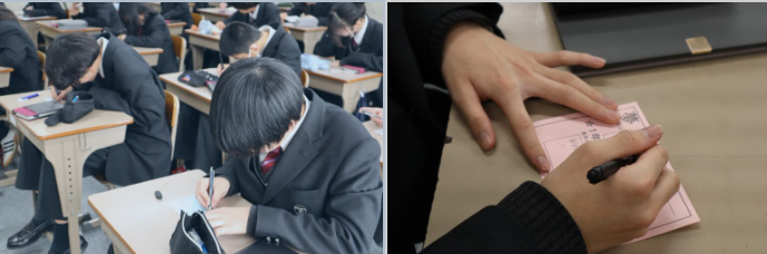 式典終了後、生徒たちは自分の教室に戻り、次の1年に向けた決意を込めて「夢カード」に夢や目標を記入しました。一人ひとりが自分と向き合いながら夢を言葉にしていく時間。