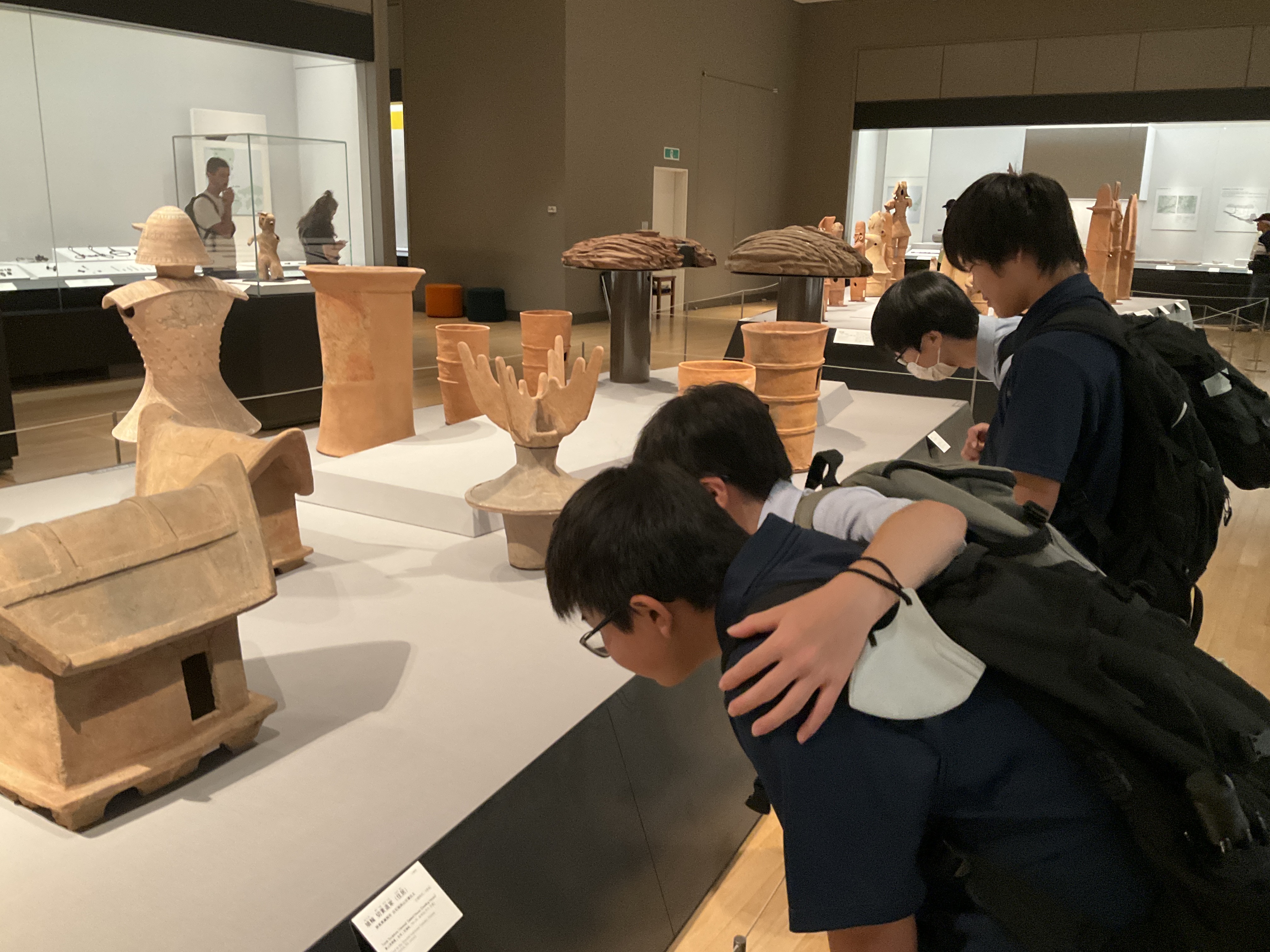 まずは全員で東京国立博物館へ。生徒たちは「あー教科書に載ってるやつだ!」と興奮した様子で展示物を見て回りました。