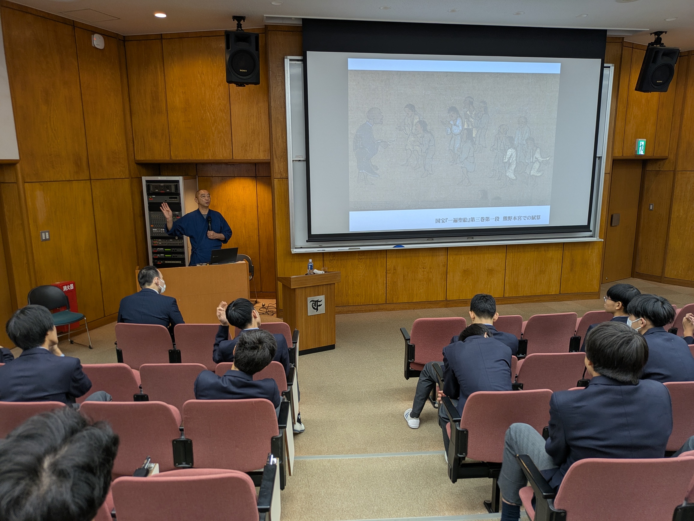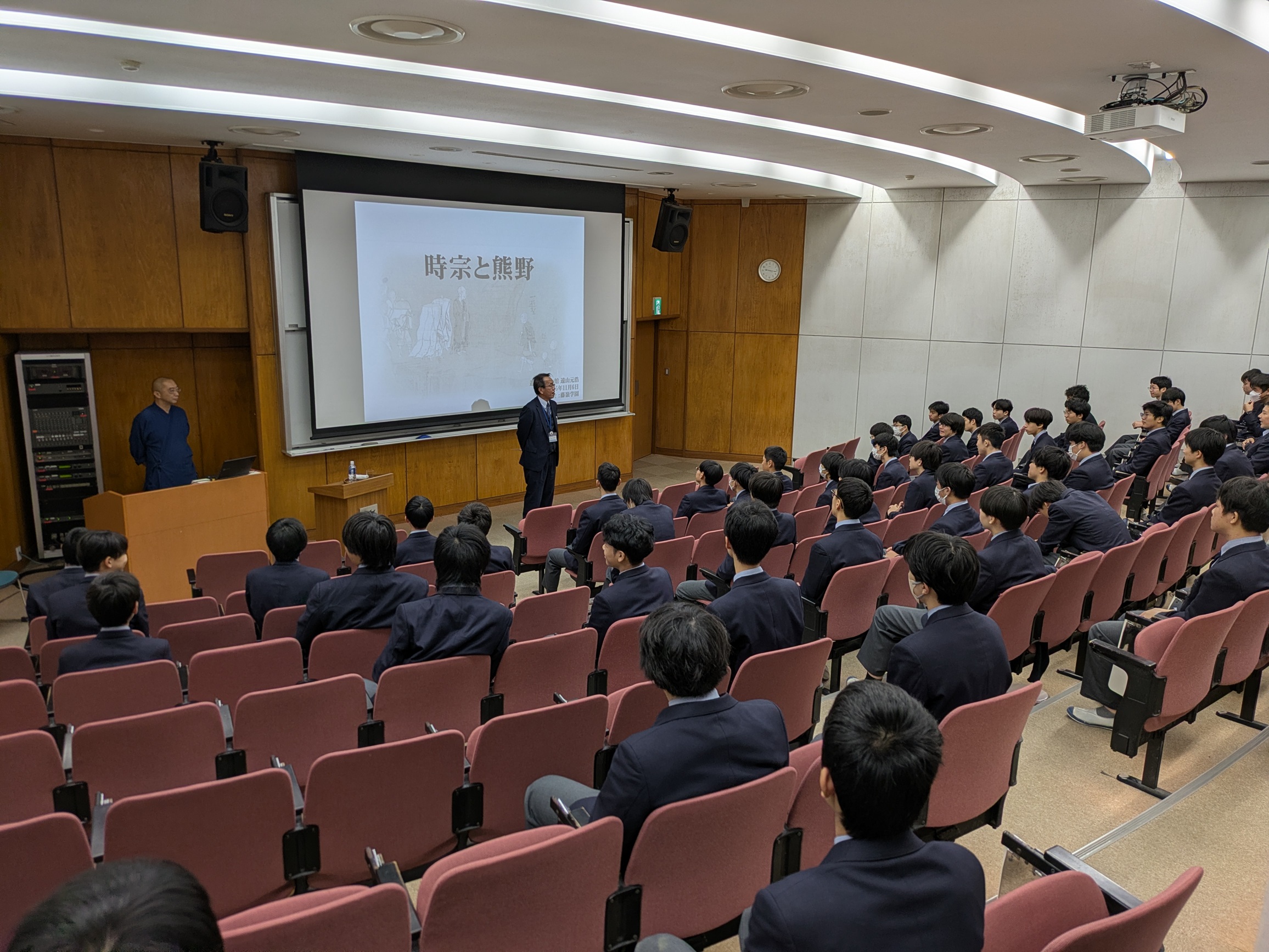 2025.11.11 藤嶺学園藤沢中学校 中3熊野研修旅行~事前研修~ 遊行寺宝物館の館長より遠山元浩先生をお招きし、熊野研修に向けた講演会を行いました。本校の母体となる時宗の開祖一遍上人の足跡を辿る熊野研修ですが、四天王寺や熊野古道の中辺路を通り熊野三山を詣でます。講演会で聞いた話を活かして色々なことを考えながら熊野研修に臨んでほしいと思います。 この学校の詳細情報を見る
