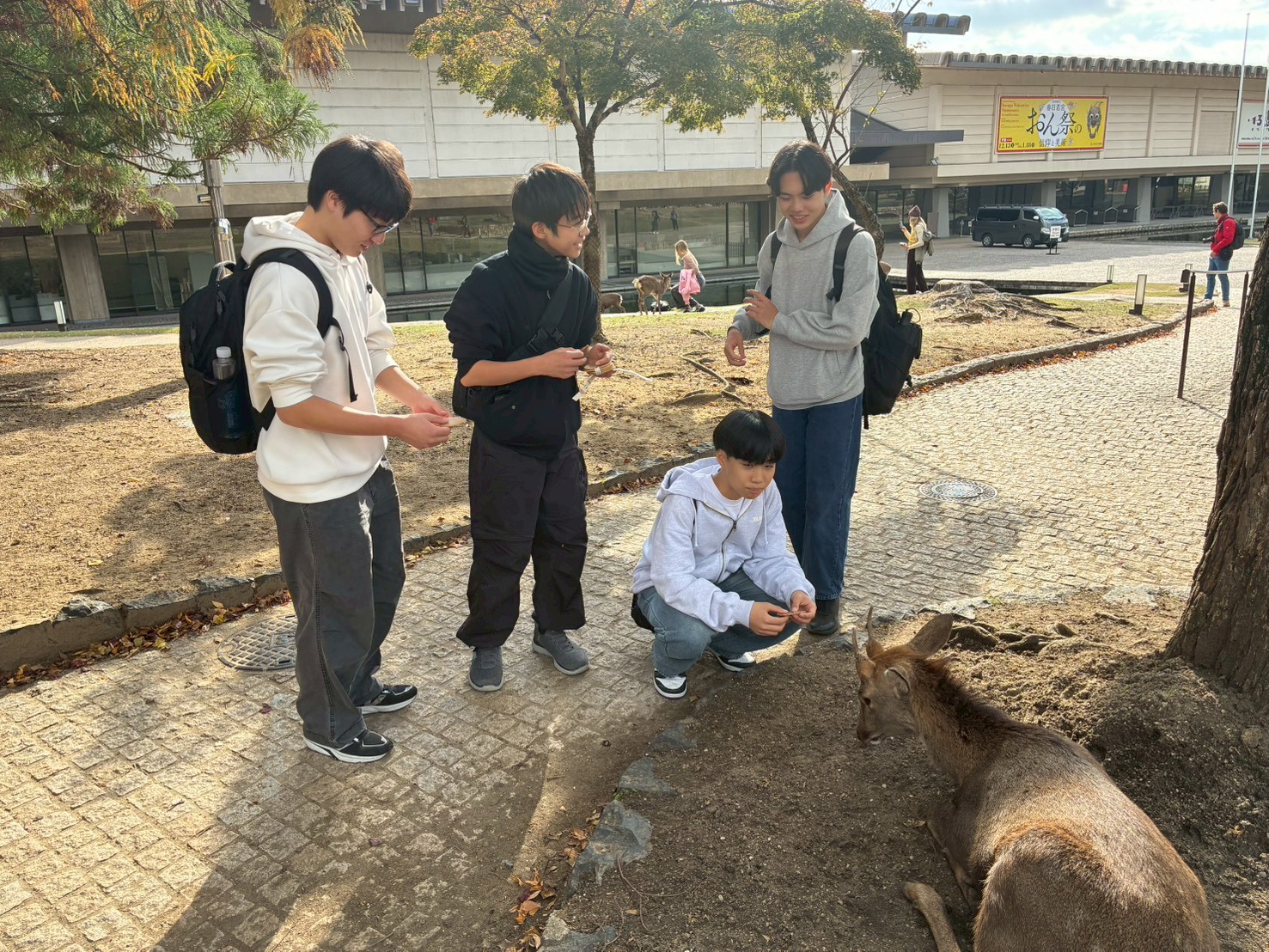 京都駅で近鉄特急へ乗り換え、奈良に到着しました。これから夕方17時ごろまで自主研修の時間です。主に奈良公園を散策する班が多いようでした。