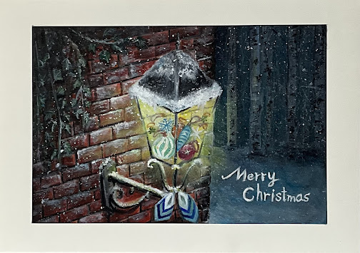 本校では、毎年クリスマスをテーマにしたポストカードを美術部が制作しており、学内コンペで選ばれた作品をハガキにして受験生にお送りしています。