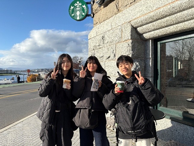 午後にはビクトリアのダウンタウンを自由に散策する時間を取りました。英語でコーヒーを注文するだけでも少し緊張していましたが、お土産を買ったり写真を撮ったりとそれぞれ自由な時間を過ごし、日本とは違った街並みを楽しんでいました。