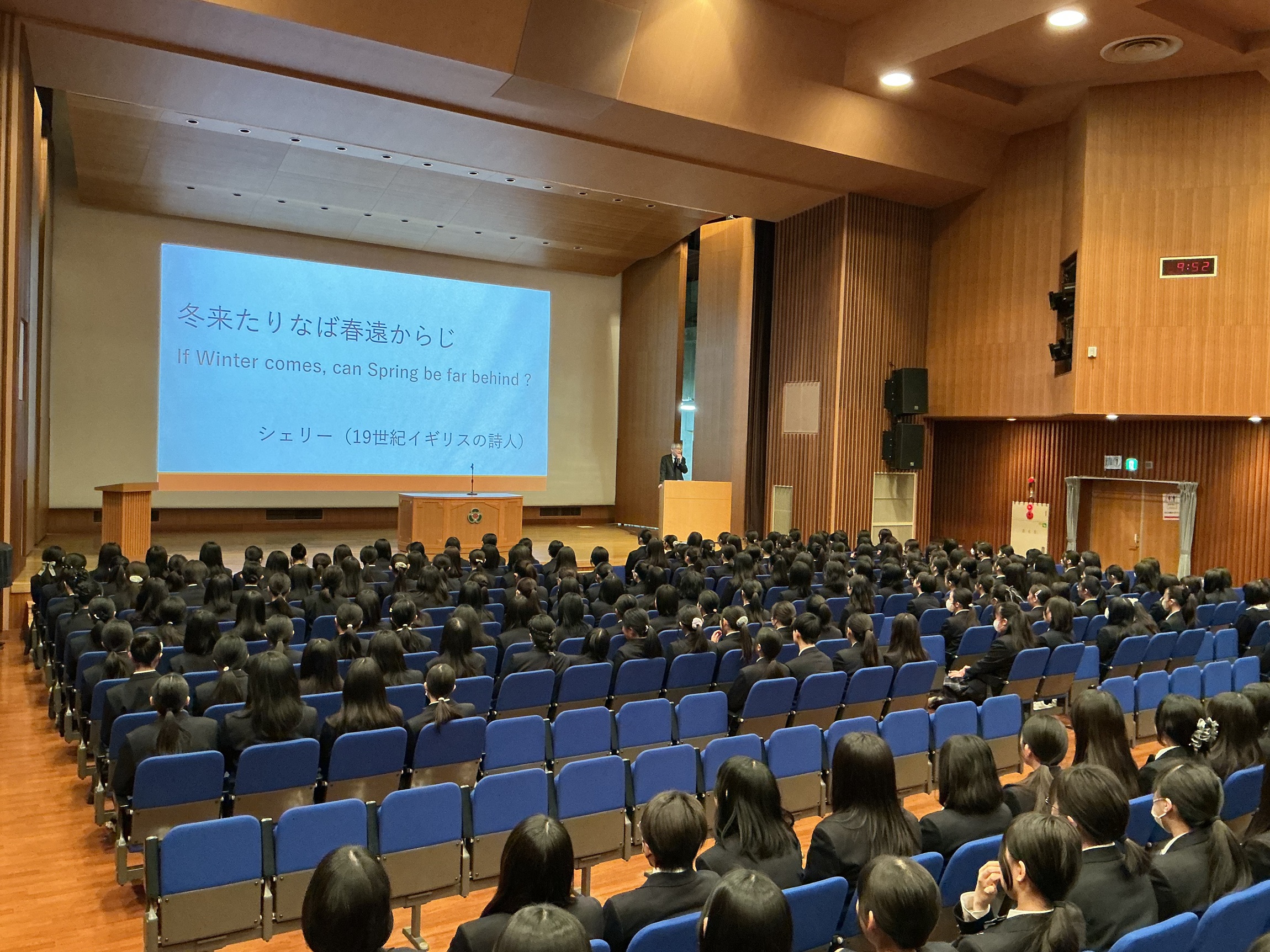 校長先生のお話の冒頭で紹介されたのが19世紀イギリスの詩人シェリーの言葉、「冬来たりなば春遠からじ」です。