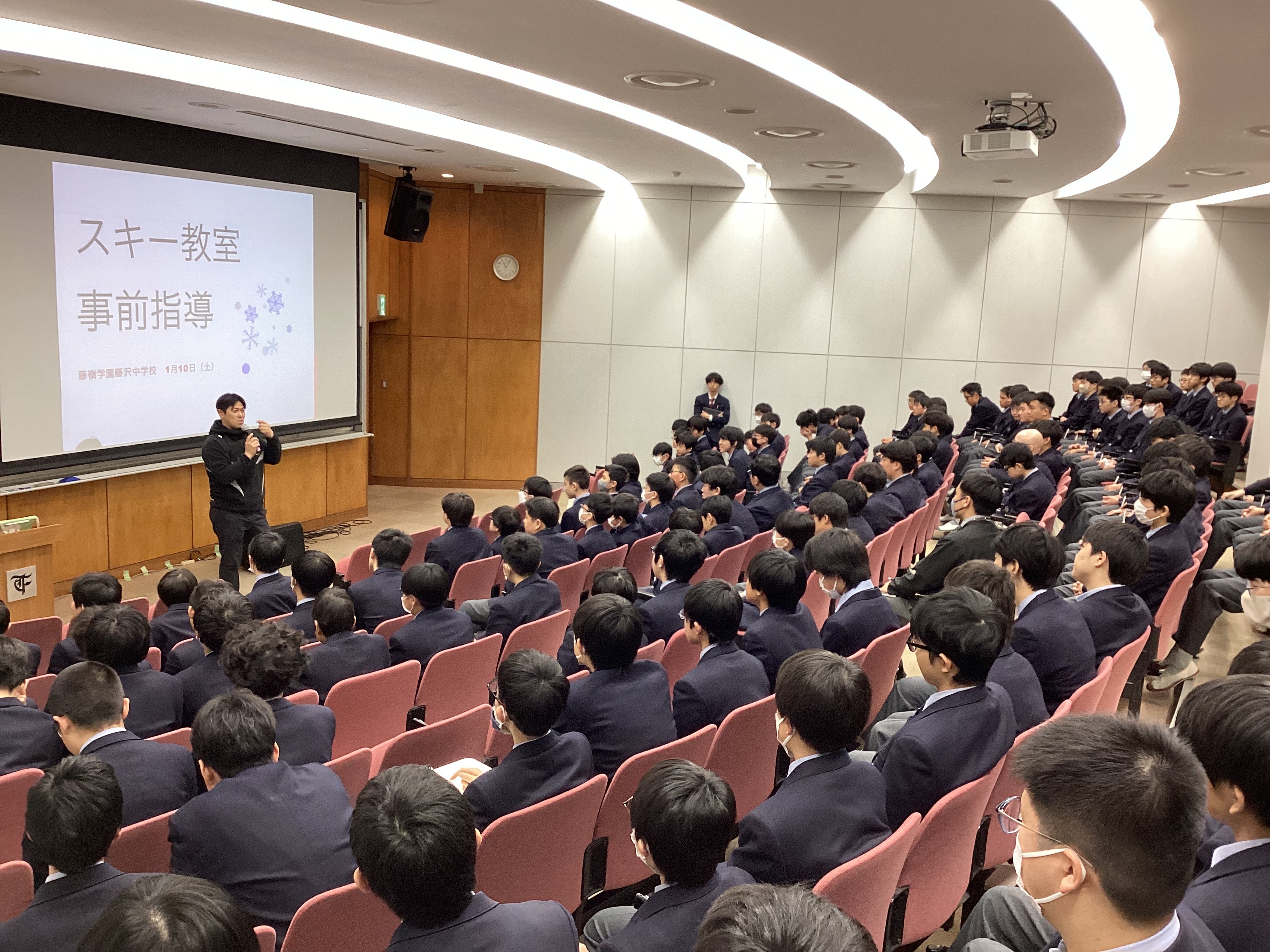 中学1・2年生は、2月上旬に実施されるスキー教室に向けて、地下ホールにて事前指導を行いました。当日は、体育科の浦野先生より、持ち物の確認、現地での活動の流れ、安全にスキー教室を楽しむためのルールについて説明がありました。今回学んだ内容を十分に活かし、万全の準備のもとでスキー教室に臨んでほしいと思います。また、期間中は体調管理にも十分留意し、充実した行事となるよう心がけてください。今回のスキー教室が皆さんの中学時代での良い思い出に残る時間になることを願っています。