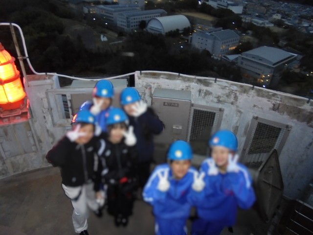 当日は風が強く厳しい寒さの中での実施でしたが、生徒たちは元気いっぱい、楽しく参加することができました。頂上からは、学校を上から見ることはもちろん、遠く地平線まで360度の景色を楽しむことができました。無事、地上に降り立った後には「煙突のぼり登頂認定証」をいただき良い記念になりました。貴重な経験をさせてもらうことができました。