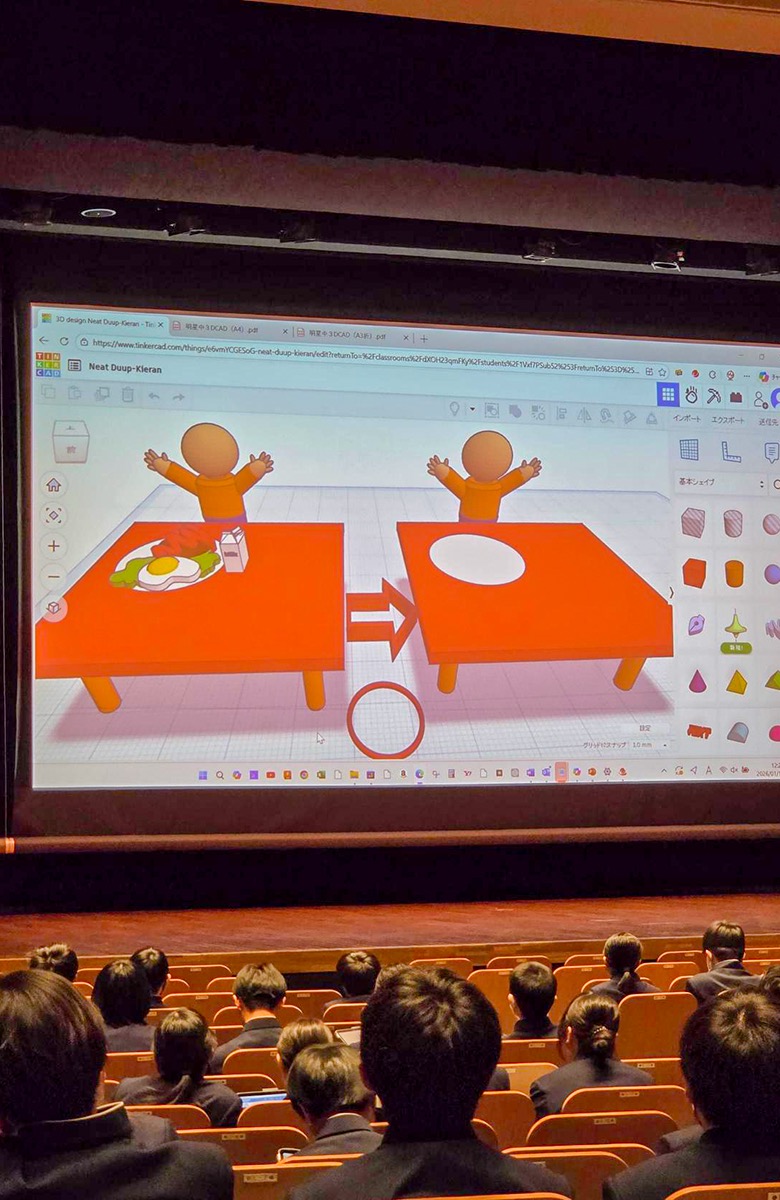 2026.01.19 明星中学校 1月17日(土)中学2年 STEAM探究特別講座 1月17日(土)、ミライクリエ協力のもと、本校の講堂にて「3DCADで自分の想いをカタチにしよう!」を実施いたしました。アプリのTinkercadをタブレットにインストールし、超高齢社会に直面する現代社会に対応すべく、様々なアイディアをカタチにしました。 この学校の詳細情報を見る