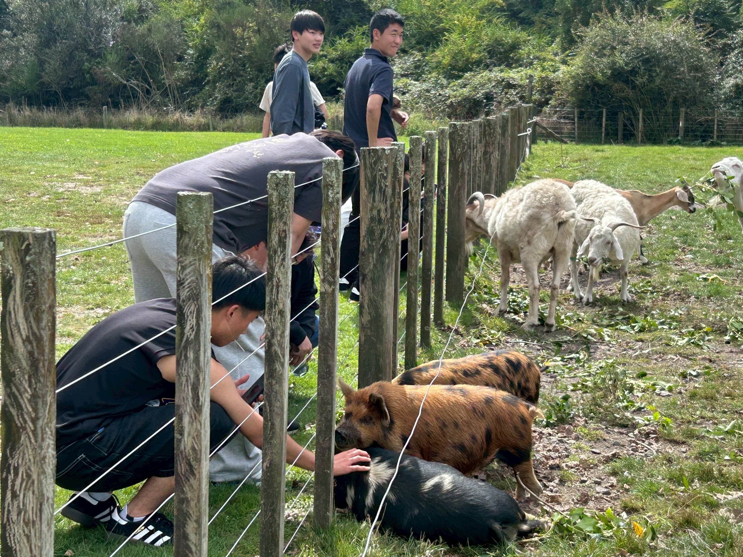 藤嶺生全員で、ロトルア課外活動に出かけました。ロトルアは地熱温泉の湧く、自然豊かな観光地です。ロトルアの農場テーマパークでは、19種類の羊や牧羊犬が登場する、羊の毛刈りショー「Agrodome Farm Show」を全員で観て楽しみました。(ニュージーランドは人口の約7倍の数の羊がいます!)「Velocity Valley」というアドベンチャーパークでは、生徒は3つのアトラクションを体験しました。なかでも生徒たちのお気に入りは、40mの高さから吊るされた状態で急降下するスカイスイングです。ニュージーランドの広大な自然を一望しながらのスリリングな体験は、きっと忘れられない思い出になったことでしょう。このアクティビティを通じて生徒たちの仲も深まったようです。