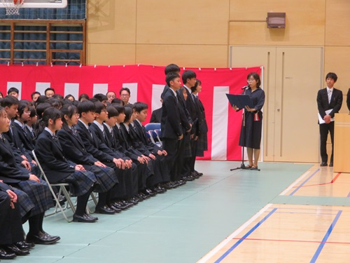 新入生代表の挨拶では、これから始まる中学校生活への抱負や、これまで育ててくれたご家族への感謝の言葉など、力強い言葉が述べられました。