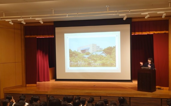 また、建学の精神である「機に応じて活動できる女性の育成」を受け継ぎながら歩んできた学園の姿にも触れました。