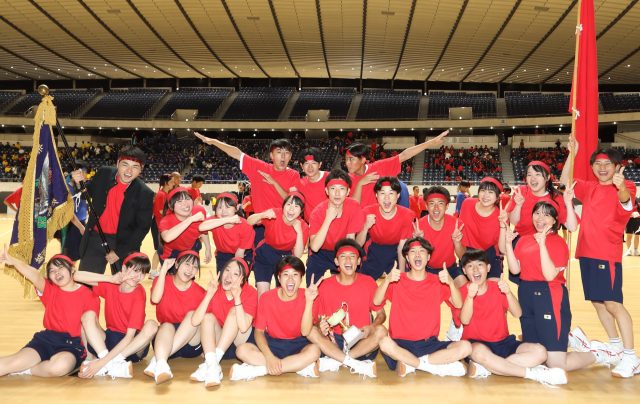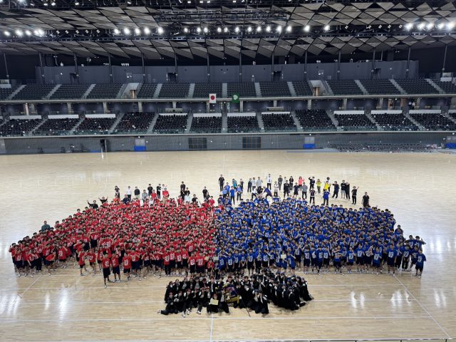 今年初めて外部施設をお借りした体育祭を実施しました。おかげで、コロナ禍で実施できていなかった中高合同で実施することができました。本校の体育祭は、学年を赤・青に分けて、競い合います。高2を中心とした応援団が、競技を盛り上げ、室内は熱気に溢れました。保護者の皆様も、たくさんの声援と拍手をおくって盛り上げてくれました。