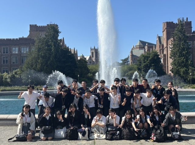 6月後半、高1生は全員でUSA・カナダ体験学習へ。探究学習の一環の中2広島・中3奈良京都体験学習、中1・2年次の英会話・中3でのTGG訪問と、段階的に経験を重ねて準備を進めてきました。現地ではカナダでホームステイ、USAではワシントン大学寮に滞在して現地校の先生や生徒と学びます。多様な文化・価値観に触れ、主体性や行動力も高まりました。