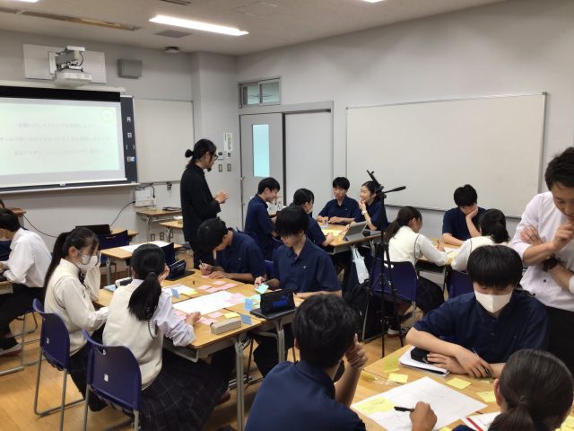 京都産業大学の先生方を招き、アントレプレナーシップに関する講演とワークショップを実施しました。未来の社会に必要な人物像や視点について学んだあとは、付箋やモールを用いてプロトタイピングへのアプローチについてレクチャーを受け、班ごとに実践活動を行いました。生徒たちは意欲的に取り組み、活発な学びの時間となりました。続く!