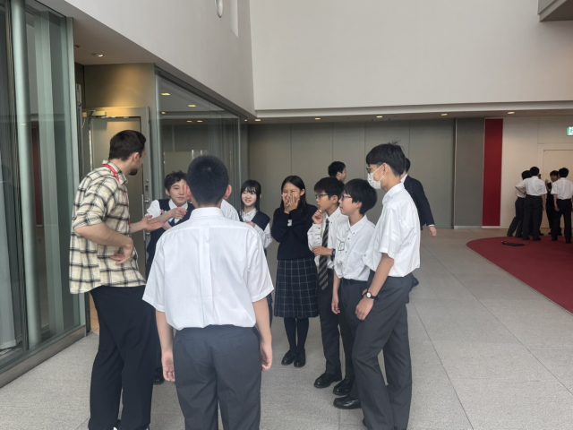 6月中旬、中学生は3学年すべてがお台場にある東京グローバルゲートウェイにて校外学習を行いました。この行事ではチームビルディングや課題に取り組んだり、様々なシチュエーションにおける会話を楽しんだりしながら、英語に触れることを体験しました。生徒たちは身振り手振りを交えつつ、授業で学んだ文法を使って体験に取り組んでいました。