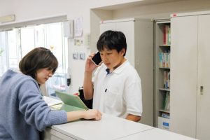 そのための学びのひとつが中学総合学習。様々な体験学習、ワークショップ、プレゼンテーションを繰り返します。中学1年生前半のテーマは「誰にでも優しい社会」。社会福祉体験を行い、その学びをプレゼンテーションとして発表します。後半は「平和をつくるためにできること(提言)」。グループで課題を見つけ、アンケート調査などを行いながら提言としてまとめて発表します。