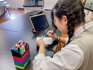 東星学園中学校・高等学校は、令和7年度の「DXハイスクール」採択校となり、3Dプリンターを導入しました。DXハイスクールは文部科学省がICTを活用した学びを強化する学校などに対して、必要な環境整備の経費を支援するもので、同校も理系教育の充実をはかる好機と捉え、申請しました。現在、3Dプリンターは科学部の活動で使用されているほか、夏休みに中学生の希望者を対象とした「STEAM LAB」という講座を2回開講し、3Dプリンターの使い方を学びました。今回は、科学部のA・Yさん(高2。以下、Yさん)と、科学部で、夏休みの講座にも参加したR・Tさん(中2。以下、Tさん)、科学部顧問の福士先生、中尾先生にお話を伺いました。