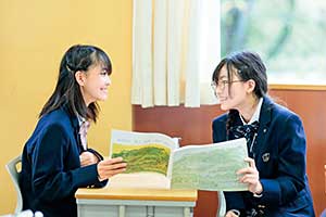 日々の授業を基本としながら、学力の向上を図るため、様々な取り組みを行っています。特に宿題のほかに、ノート1ページ分を勉強して提出する「365ノート」と、学習計画や生活リズムを記録する「スケジュール帳」は、毎日提出することで、確実に学習習慣を身につけ、実力アップにつながります。また、昼食後のホームルームでは、3大新聞読み比べを行い、社会情勢や各々の話題にふれます。さらに、視点や考え方の違いを学び「自問自答力」を磨きます。