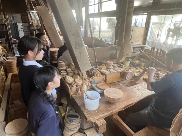 本校はグローバル教育だけでなくローカル教育にも力を入れておりますが、その一環として地元小田原の魅力を知る活動を1年生で行います。先日あるグループは小田原漆器の見学と体験をさせていただきました。小田原漆器は天皇家も使用された、室町時代より続く伝統工芸品です。生徒たちはこれから学んだことをまとめ、発表に向けて準備を進めていきます。