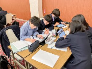 ホームルーム合宿では旅行会社の協力を得て観光プラン作りに挑戦。