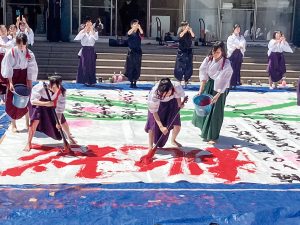 ほかにも「書道パフォーマンスグランプリ」に出場したり、地域の商業施設や千葉県庁から声がかかったりするなど、学外でもパフォーマンスを披露する機会が増えています。