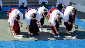 文化祭では例年、力の入った書道パフォーマンスを披露。今年は、中学生・高校生・関東大会用と3種類のパフォーマンスを用意。2日間で6公演も行いました。