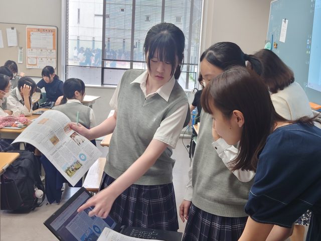 英字新聞「NAKAMURA TIMES」完成に向け、夏休み前から作業が進んでいます。今回は各グループが仕上げてきた記事に対して、講師の先生から「ヘッドラインの最初の文字の使い方」といった実践的なアドバイス、また記事のよい点やまだ改善できる点などを指摘してもらいました。(なお、英字新聞は10月下旬に無事完成しました。絶賛配布中です。)