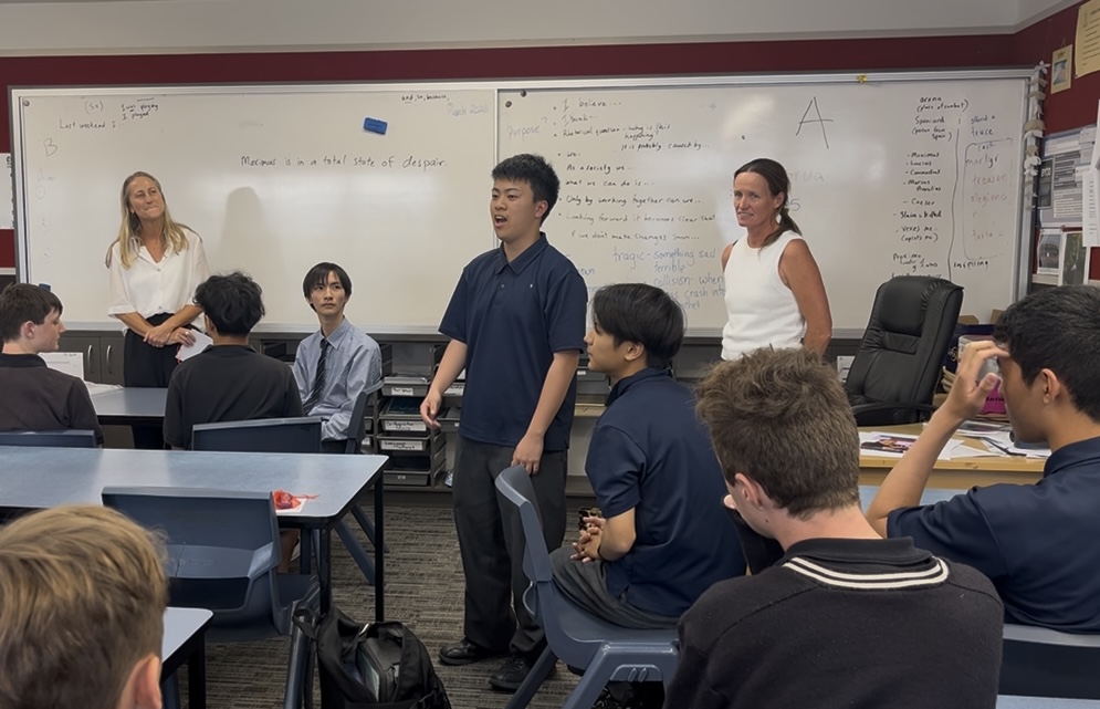 今日はTBCへの最終登校日でした。早いもので、2週間一緒に過ごしたバディとは今日でお別れです。 4時間目の英会話の時間には、バディも参加して修了式とお別れ会が行われ、本校代表生徒のスピーチと校歌を披露しました。さらに今回は、生徒一人ひとりがバディに向けて、英語でスピーチをしましたが、心からの感謝が真摯に伝わるものでした。言葉の壁を超えて、想いが通じあった素敵な時間となりました。また、数名のバディからもスピーチがあり、感動的な雰囲気と温かい言葉に、少しうるっときている生徒もいました。この2週間で、まさに心に触れる体験が出来ていた証拠です。感動的な修了式とお別れ会の後は、バディと一緒にピザを囲ってパーティーを楽しみました。