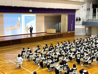 社会人としての行動、責任、幸せなことだけでなく、日本が実際に直面している厳しい現実や大きな問題などについて、副校長先生よりお話がありました。これからの日本は、みんなで一緒に考え、豊かに、安心、安全に暮らしていける未来をつくっていく必要があります。