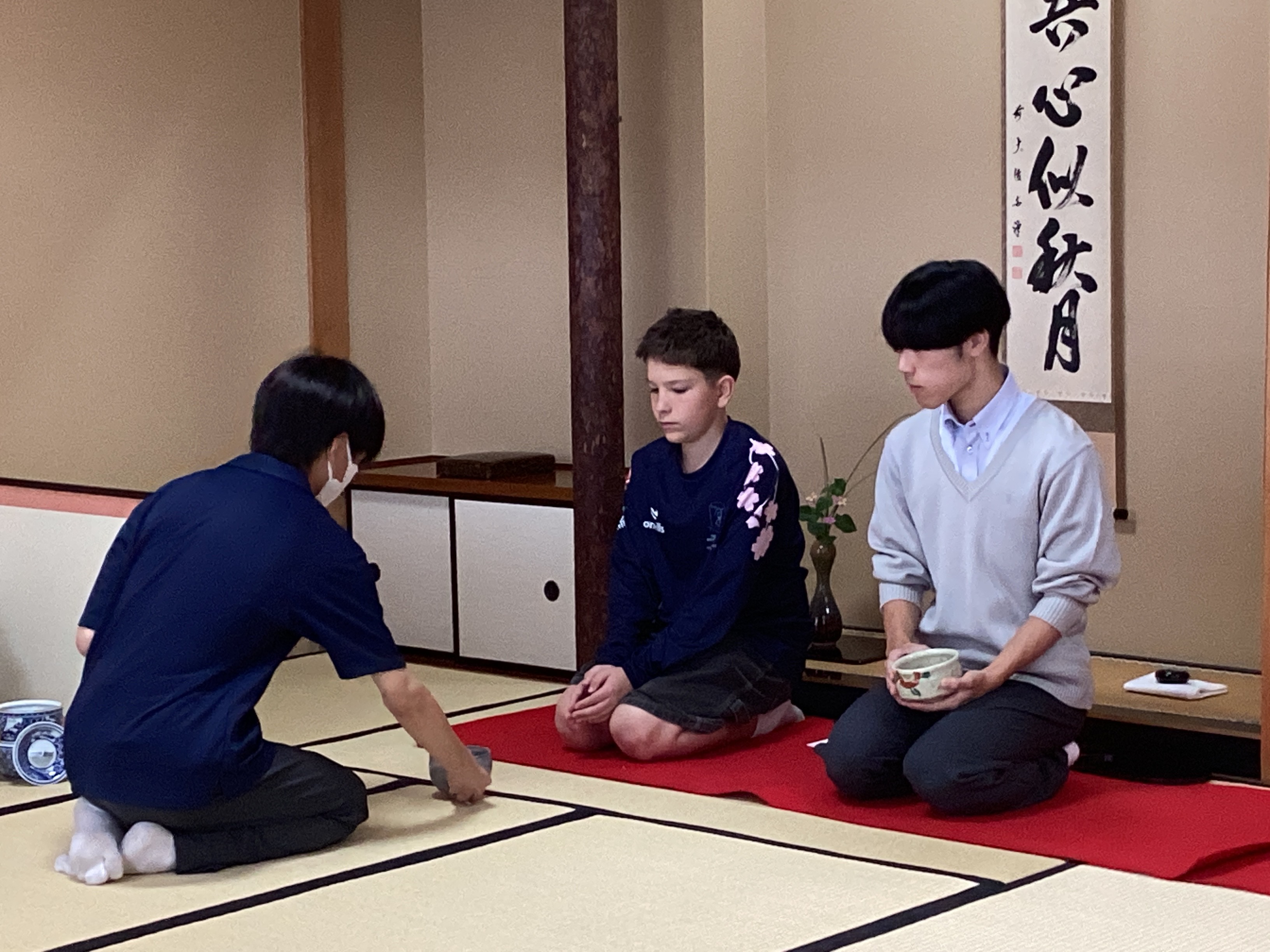 今日は茶道体験が行われ、本校茶道部員がおもてなしを行ないました。英語で挨拶やお茶の頂き方の説明を完璧に行うことができ、日頃の英語学習の成果が発揮できただけでなく、本当の意味での国際交流ができました。