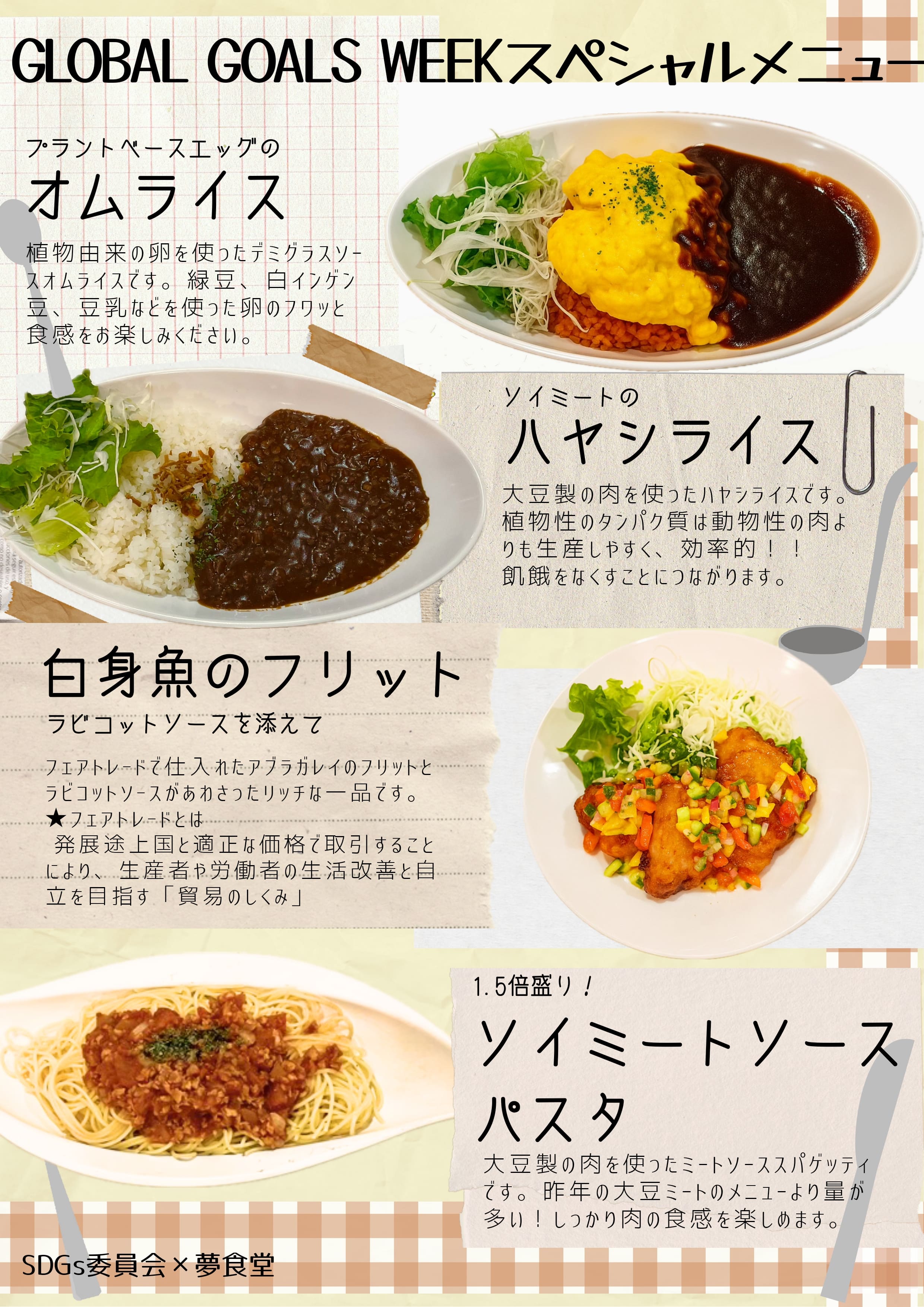 今回は、郁文館の学食「夢食堂」にスポットを当て、大豆ミートやプラントベースエッグなどを使ったSDGsメニューをご紹介します!