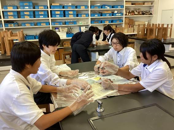 実際に本物に触れる体験に、生徒たちはとても興味津々。