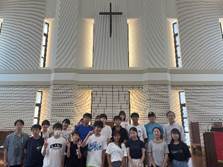 三日目は、被爆した教会である広島流川教会を訪れ、向井希夫牧師からお話を伺いました。被爆十字架が礼拝堂の真ん中に置かれていました。被爆された教会の方の証言を映像で見せていただきました。