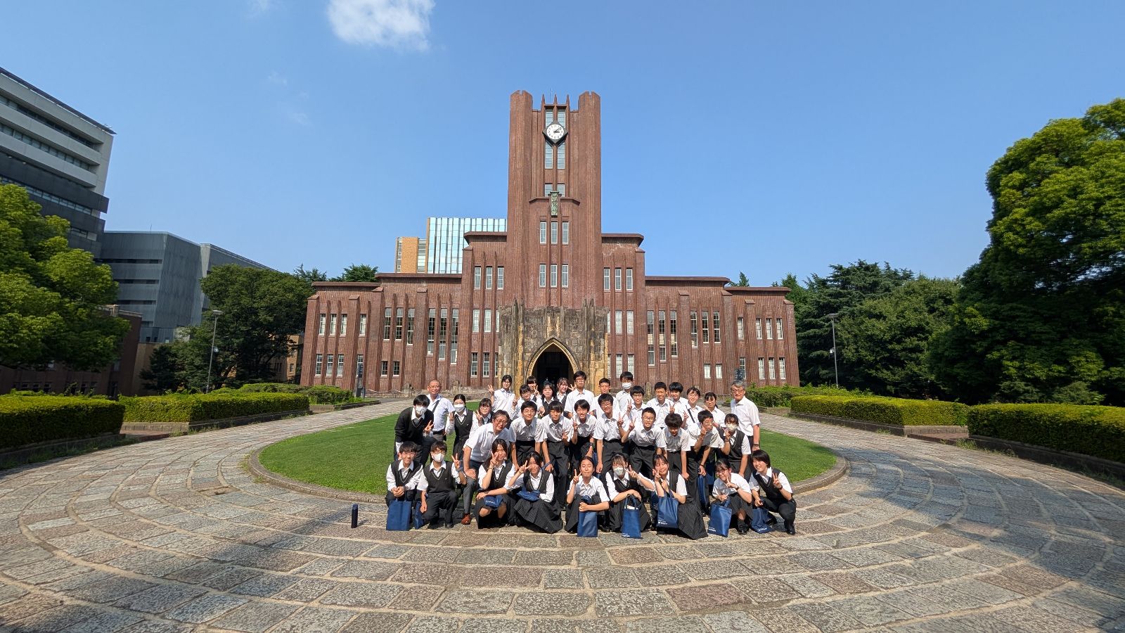 実験室の見学では、精緻な機器を間近にし、未知なるものに挑戦する研究現場の空気を体感。挑戦と失敗を繰り返しながら前に進む“研究の楽しさ”を知る時間となりました。最後には安田講堂前で記念撮影を行い、訪問を締めくくりました。