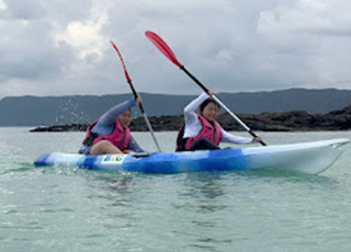 午後は瀧野川ケンムンカップを開催!2人乗りのシーカヤックで、リレーを行います。乗り降りなどの場面ではチームワークも試されます。マングローブカヌーとは違い、波や風の影響が大きく、操縦の難しいカヤック。インストラクターの方にコツを教えていただき、練習を繰り返します。本番では、大きな声で声援を送り、白熱した試合展開となりました!