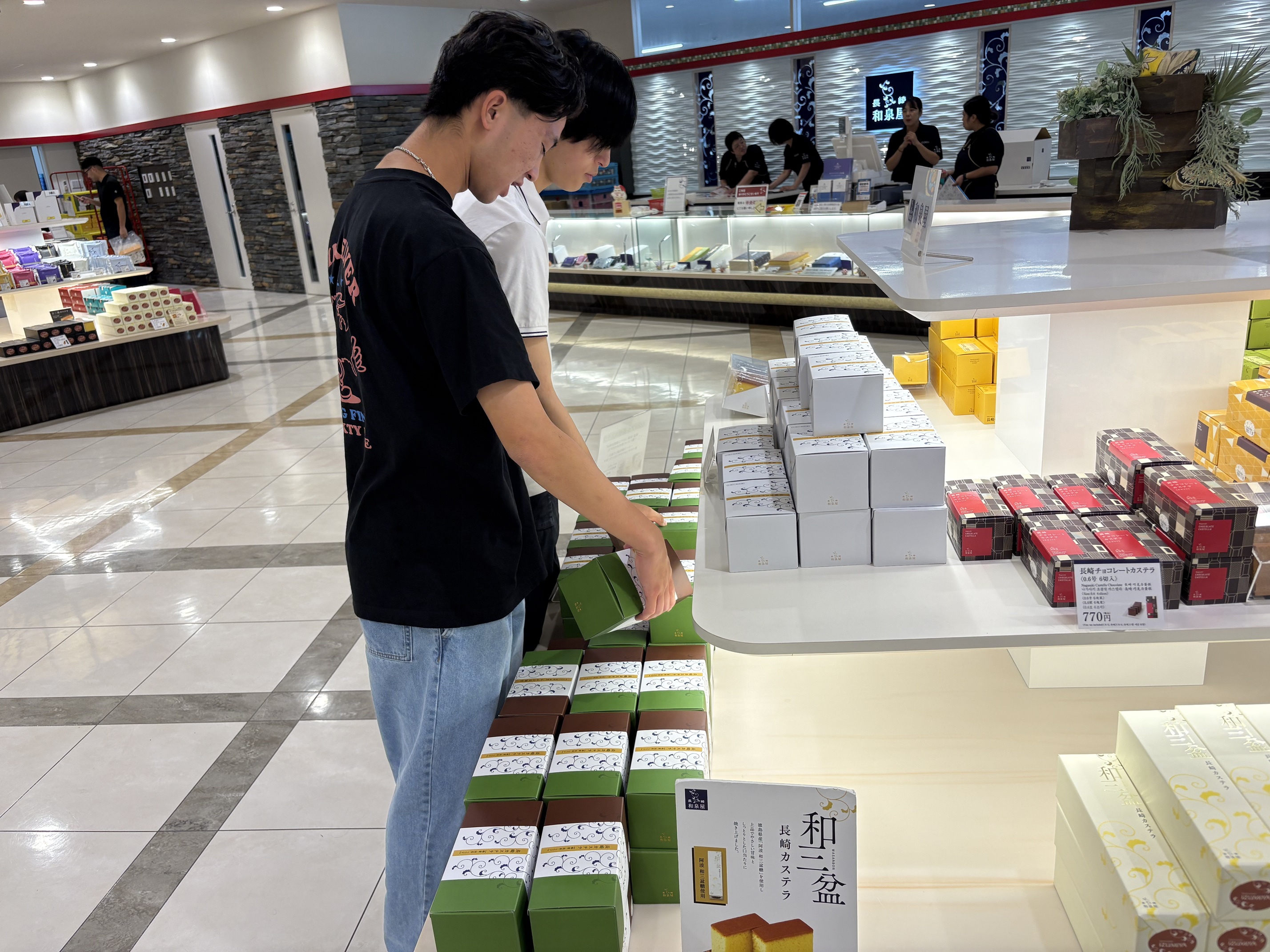 午後の活動は、長崎カステラランドでの昼食からスタートしました。お土産選びでは、家族やお世話になっている方の顔を思い浮かべながら、ひとつひとつ丁寧に品定めする姿が印象的でした。「こっちの方が得だよ」「いや、計算するとこっちの方が…」と、真剣な表情で値段や量を比べる声も。限られた予算の中で、どれだけ喜んでもらえるかを考えるその姿に、思いやりと成長を感じました。
