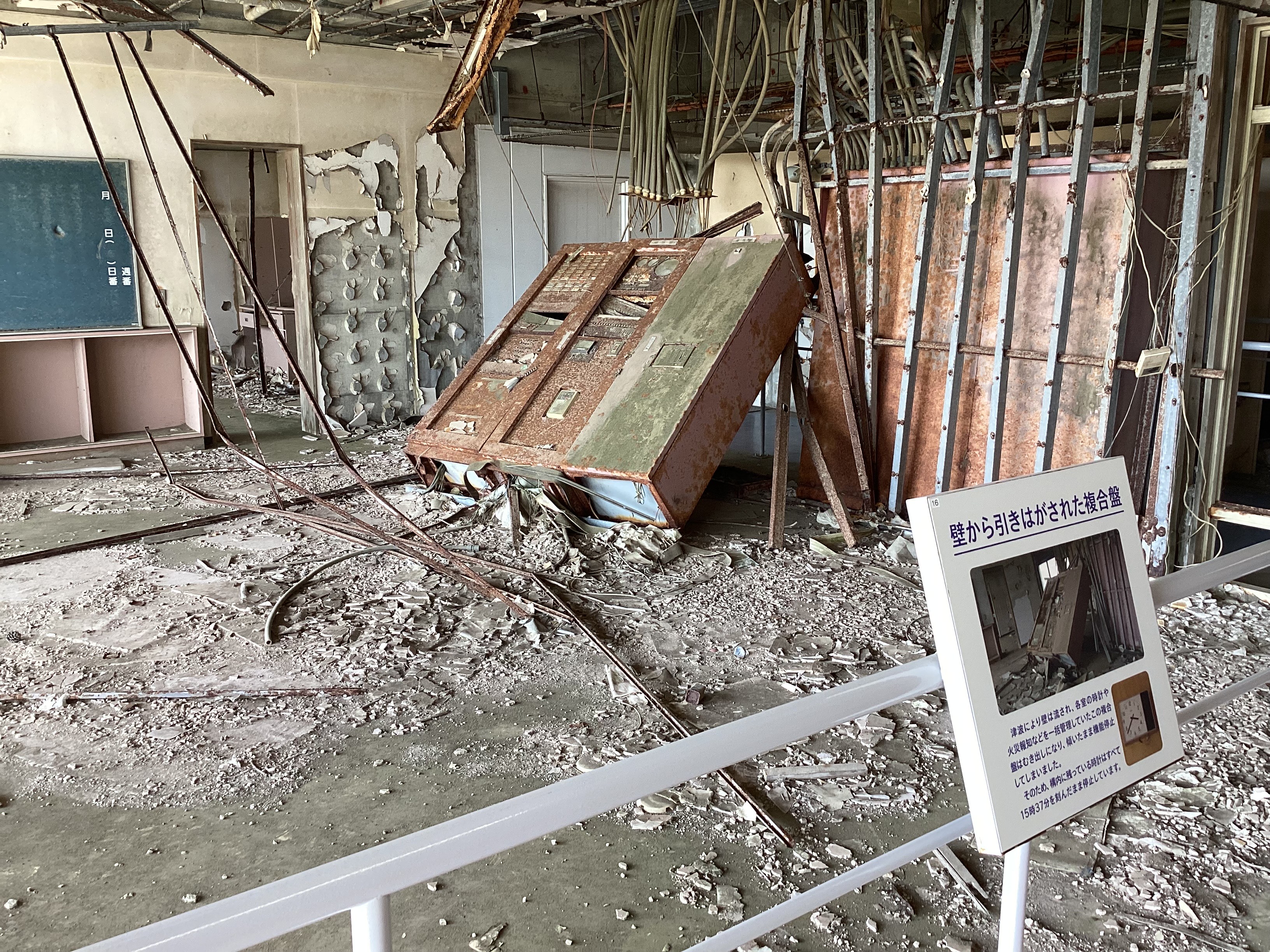 7時に朝食をとった後、出発の準備を整え、2泊お世話になったホテルニュー水戸屋に別れを告げ、8時にバスで浪江町へ向けて出発しました。 バスガイドの石戸谷さんは、仙台空港について説明しました。「仙台空港は平成9年に開港し、滑走路は長さ3000メートルで上空から見るとアルファベットのYのような形をしているのが特徴です。東日本大震災では、1階部分が津波で浸水しました。」道中に、放射線量が高いエリアに差し掛かった際には、「私たちは自然界でも放射線を浴びているので、過度に心配する必要はありません。」との説明がありました。また、被災地には「まだ住めない地域もありますが、故郷に帰りたいという地元の方々の強い思いがあります。」と、住民の気持ちを代弁する言葉もありました。 約110分間の移動を経て、9時50分頃に浪江町に到着しました。この日の午前中は「ホープツーリズムフィールドワーク」として、東日本大震災と原発事故からの復興が進む浪江町を訪れました。まず、『東日本大震災・原子力災害伝承館』を訪れました。この施設は福島県双葉町にあり、地震、津波、原発事故という未曾有の複合災害の事実を後世に伝え、復興への歩みや防災の教訓を発信しており、事故直後の発電所の様子や、長期にわたる住民避難、放射線が県民生活に与えた影響など、多数の資料が展示されています。 伝承館の見学後、『双葉町交流センター』で、地元名物なみえ焼そばを食べ、地元の味覚に触れました。その後、フィールドパートナーの熊谷さんと一緒にバスで浪江町を巡り、当時の様子を語っていただきました。「震災当時をイメージしながらフィールドワークを進めてください」と呼びかけ、中野地区の産業団地や、全町避難をした双葉町から浪江町へ移動した状況について説明していただきました。「浪江町は二度と人が住むことはない災害危険区域に指定されました」と、厳しい現実を伝えていただきました。 バスで5分後、震災遺構として残る『浪江町立請戸小学校』も訪問しました。床が抜け落ちた体育館、天井が崩れた教室など、津波の爪跡を目の当たりにし、生徒たちは真剣な表情で見入っていました。小学校の教師と生徒が一時避難した『大平山霊園』にも足を運び、熊谷さんは、「この場所は、請戸小学校から1.5キロ離れた場所にあるので、小学生にとっては遠かったと思います。津波は4メートルにも達しましたが、今いる場所は6メートルなので、ここで生死が分かれました。」と語っていただきました。浪江町東日本大震災慰霊碑前で、若者である私たちが合掌し、後世へ災害の恐ろしさを伝承することを誓いました。 13時30分、浪江町を出発。約70分かけて、『スパリゾートハワイアンズ』へ向かいました。14時45分にホテルに着き、生徒たちはプールや温泉施設で思い思いの時間を過ごし、あちらこちらで歓声を上げて楽しんでいました。 19時からは夕食のハワイアンバイキング形式でいただき、いよいよお待ちかね20時30分からは迫力満点の「ポリネシアンフラダンスショー」を鑑賞し、24名の女性ダンサーと4名の男性ダンサーに大きな歓声と拍手が送られました。 22時、生徒たちは心地よい疲労感とともに、4日目を終えました。