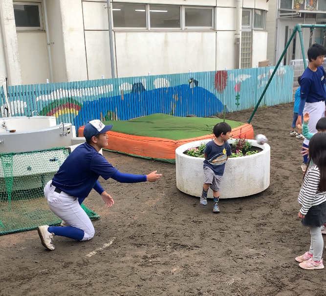 幼稚園では最近、野球が人気を集めており、「本物の野球選手たちと触れ合ってみたい」という子どもたちの声を受けて、今回の交流が実現しました。