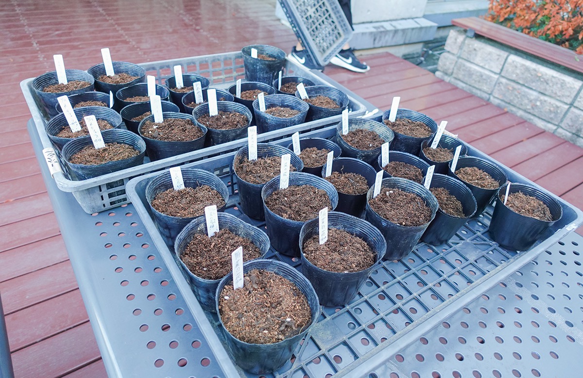 この日の活動の最後に、ネモフィラと菜の花の種をポットに蒔きました。