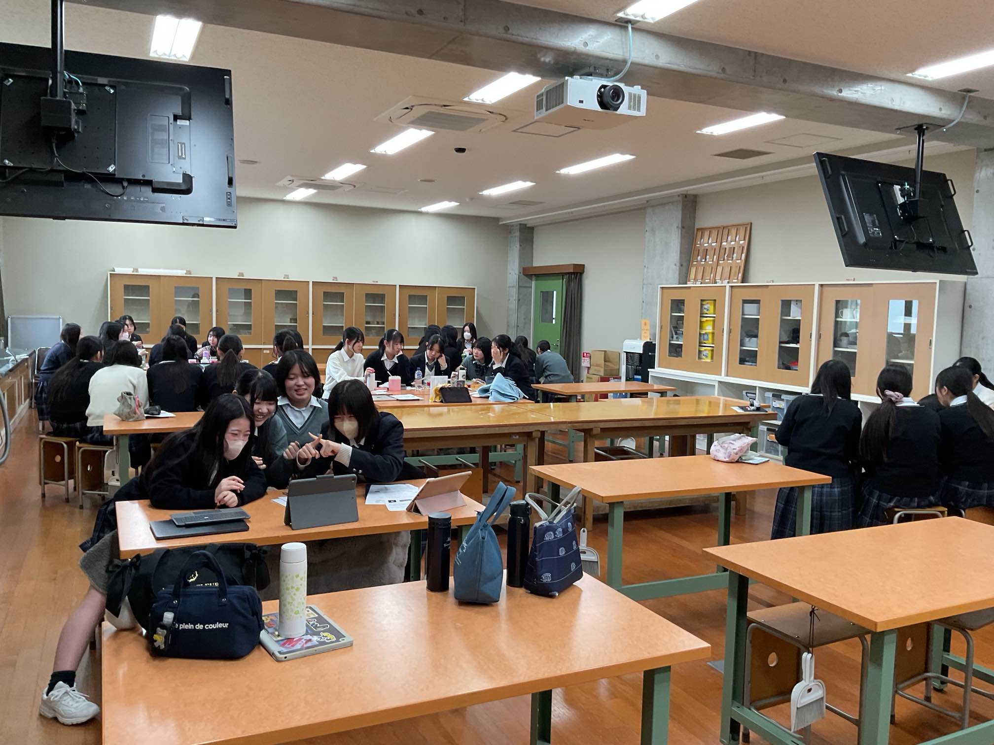 生徒たちは事前に英語と日本語の質問を作成し、Teams上で少人数グループに分かれて会話を実施。前半は日本語、後半は英語でのやり取りを行い、学校生活、文化の違い、留学の経験や期待など、さまざまなテーマで盛り上がっていました。