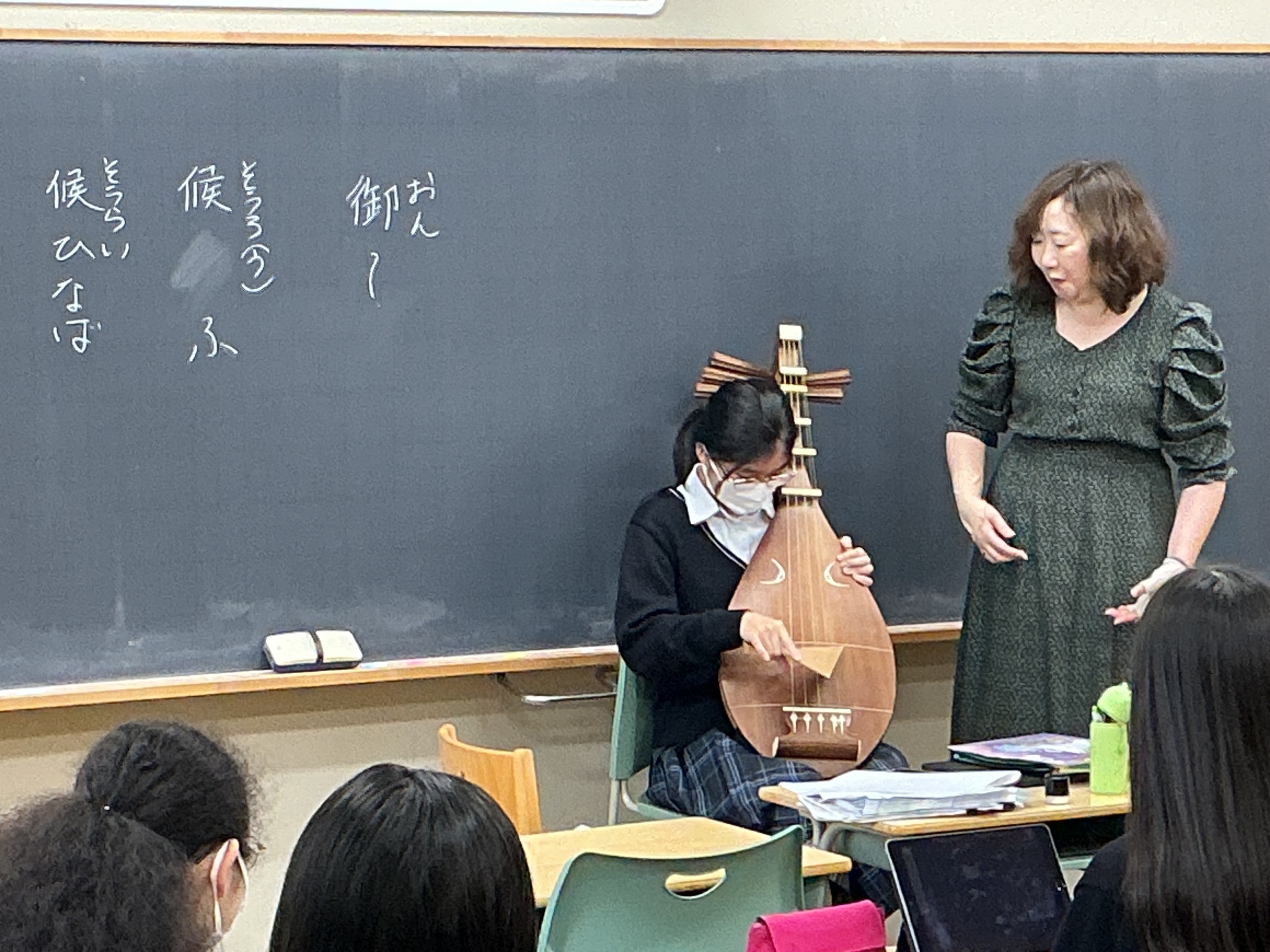授業を担当する先生は、大人になってから琵琶を習ったそうです。大人もずっと勉強することが大切、とおっしゃっていました。生徒たちも、聴きながら物語の情景を想像でき、貴重な体験だったと語っていました。