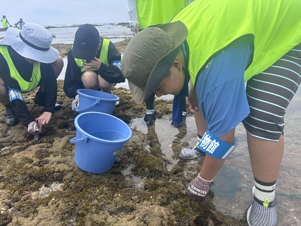 8月8日(金)、KSST Jr(KEIHOKUスーパーサイエンスチームJr)のプログラムである「勝浦臨海実習」を実施しました。参加した中学2年生36名は、千葉県立中央博物館分館海の博物館職員の方にご指導いただきながら、磯での生物採集や観察、解剖を行いました。