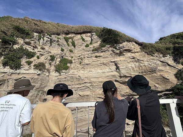 当日は天候にめぐまれ、磯で採集を行う午前は曇り、海中展望塔を訪れる午後は晴れと活動のしやすい1日となりました。生徒たちは午後の実験・検証で行う生き物を探しつつ、ウニやカニなどさまざまな生き物に触れることができたようです。実験・検証では、「カニは明るいところと暗いところのどちらを好むのか」や「塩分濃度の違いによる生き物の行動の変化」、「海藻を熱したときの色の変化」などさまざまな活動に取り組んでいました。また、海中展望塔では、魚類の観察もさることながら、展望塔への道中に見ることができる地層の観察を行いました。中学1年次の学習の振り返りを行うことができました。