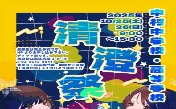来場をご希望の方は、下記リンクよりお申し込みください。中村生たちがキラキラと輝く清澄祭へ、ぜひお越しください!