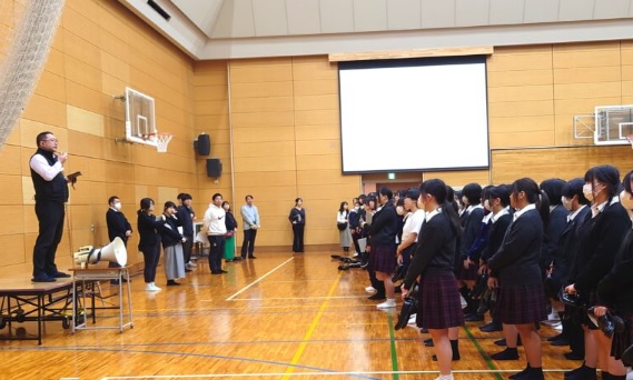 訓練では防災委員の生徒の指示の下、生徒たちは迅速に避難場所に移動しました。今回の訓練が、災害においても対応できるように、日頃から意識を高めることの大切さを再認識できる良い機会となりました。