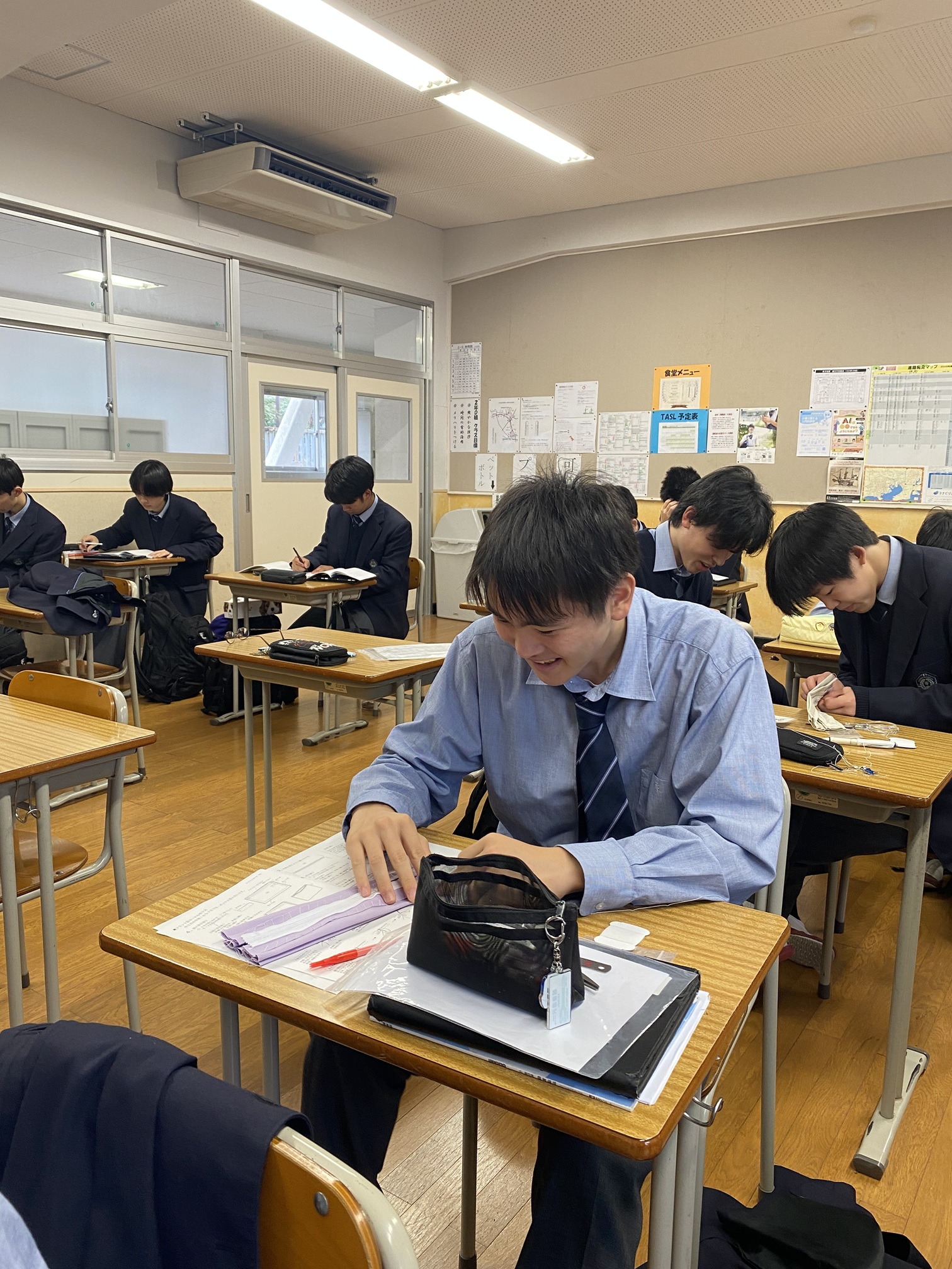 高校2年生2学期授業の様子です。今年の被服実習はキャラメルポーチです。マチの部分がキャラメルの包装のような形になり、立体的で物が沢山入るポーチになります。作業のメインはファスナー付け。慣れない作業に苦戦している生徒もいましたが、本返し縫いやかがり縫い、玉結び玉留めなど手縫いの基本を習得できました。生徒はミシンを使いたがるのですが、日常でボタン付けやズボンの裾がほつれた時など、手縫いで簡単に補修できる技術をおさらいできるのは今回が最後かと思います。これからはエコの時代、靴下に穴が空いたぐらいですてないで今回学んだ補修技術をいかし、ものを大切にする男子になって下さいね。