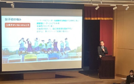 「中村の魅力をおさらい」というサブタイトルでしたが、中村で身につくチカラ、入試制度、進学指導、英語・国際教育について改めてお話しさせていただき、さらに中村Ambassadorの生徒たちのプレゼンテーション・座談会も聞いていただきました。