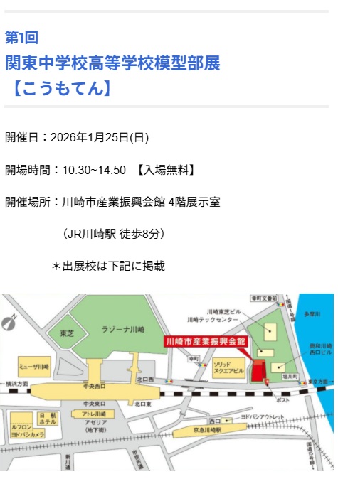 関東中学校高等学校模型部展に参加します