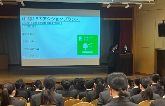 中学1年生のテーマは『SDGs研究』。持続可能な開発目標(SDGs)の各ゴールに基づき、関心のある課題ごとにチームを編成し、活動を進めてきました。