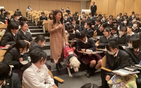 盲導犬との生活についてのお話も、生徒にとって貴重な学びとなりました。盲導犬は10歳で引退すること、この日来てくれた盲導犬は9歳であることなど、普段はなかなか聞くことのできない話に、生徒は真剣に耳を傾けていました。