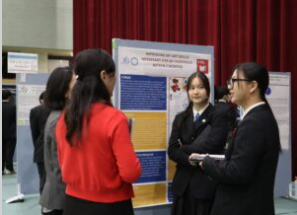 後半には、1年生全員によるポスタープレゼンテーションを実施しました。Honorsクラスの生徒およびLiberal Artsクラスで海外大学進学を志望する生徒は、オールイングリッシュでの発表に挑戦し、来場者や外部識者との質疑応答にも積極的に取り組みました。